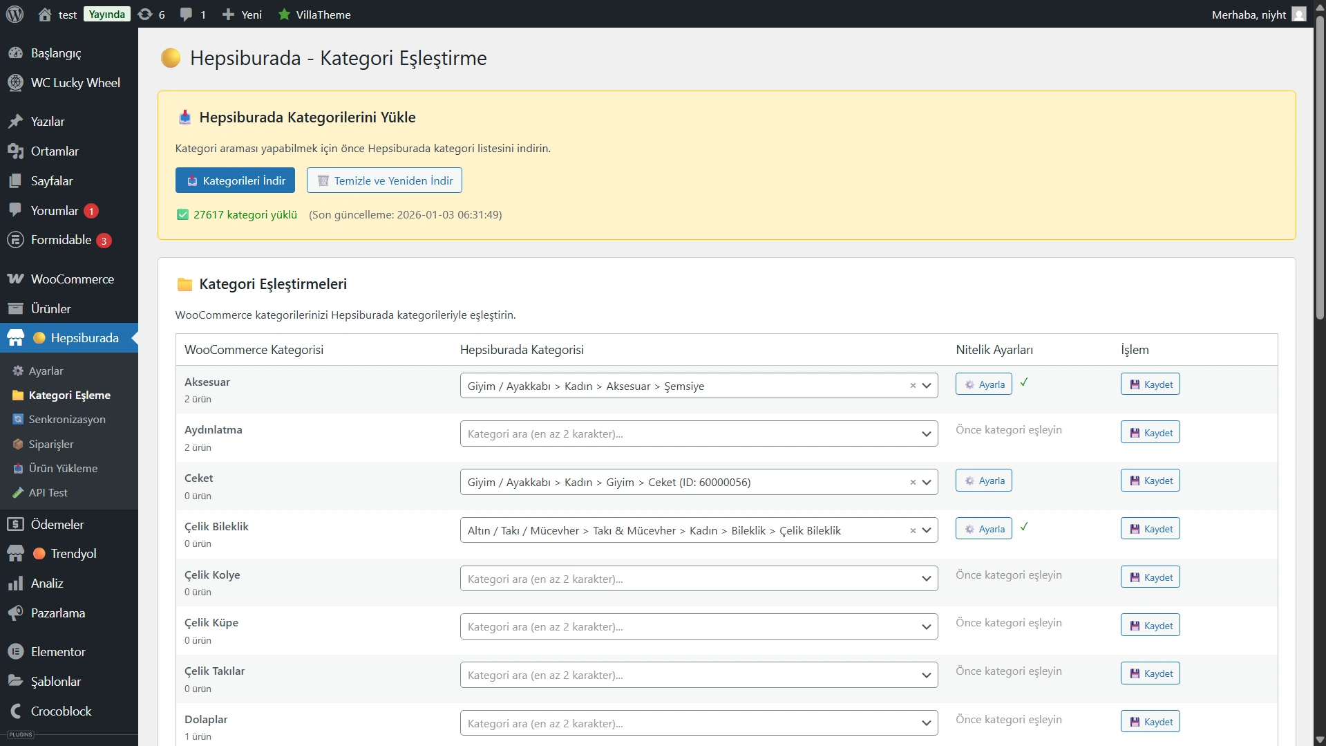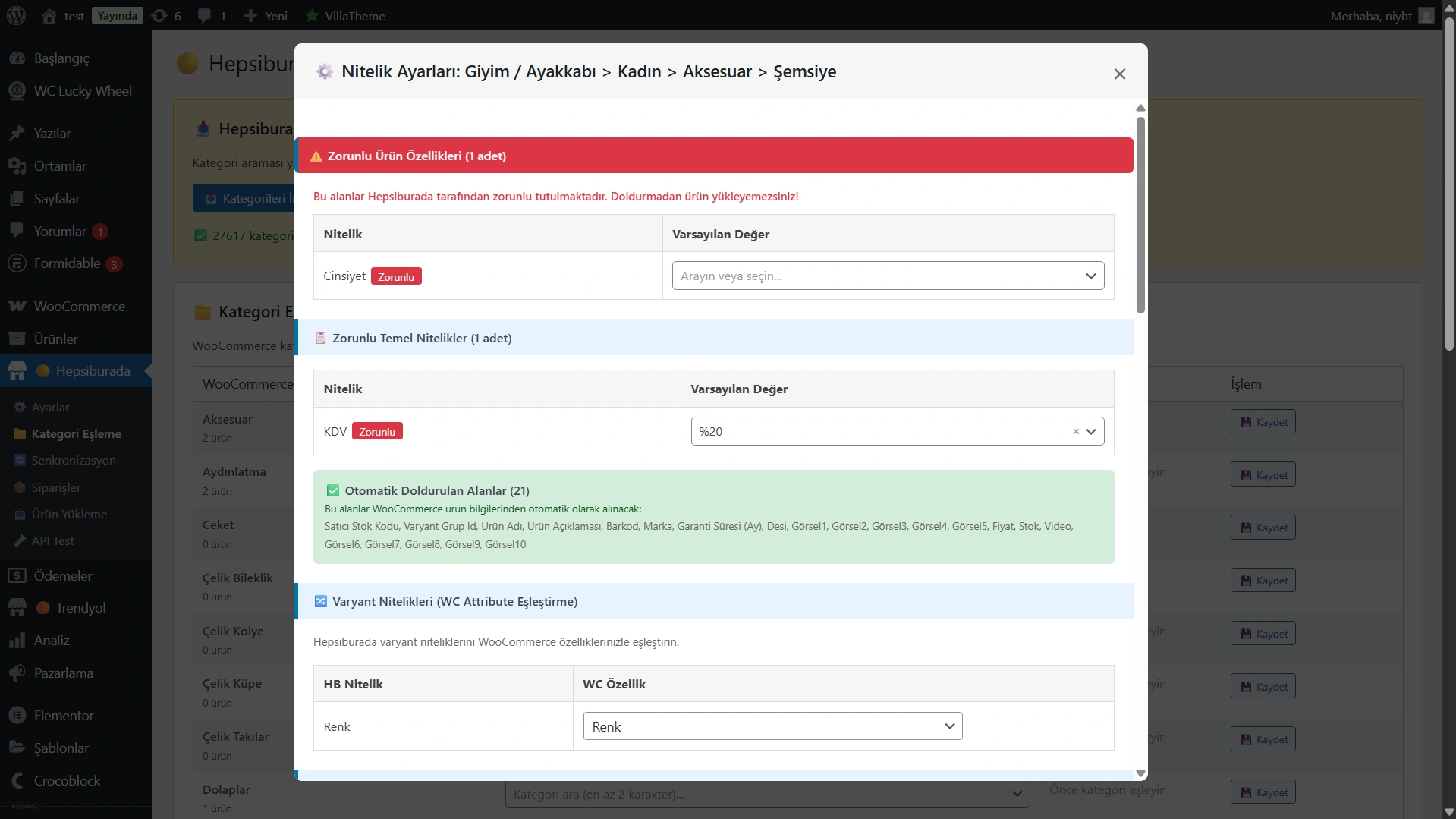 WooCommerce → Hepsiburada: Sitenizdeki ürünleri Hepsiburada kataloğuna uygun şekilde eşleştirin ve tek tıkla satışa açın.